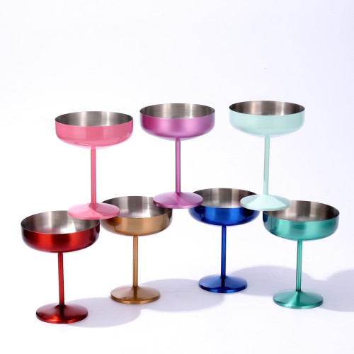 OEM 300ml Double Wall Insulated Stainless Steel Cocktail Tumbler Wine Glasses Insulated Martini Glasses for Bar Use